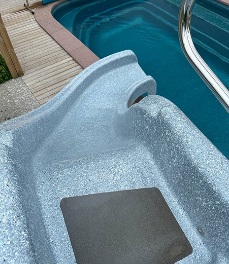 - Все элементы подачи воды, а также обратная сторона горки закрыты декоративной накладкой из стеклопластика. Подобное решение не имеет аналогов и придает эстетическую завершенность. Для оборотной стороны горки возможно выбрать любое покрытие из 17 цветов коллекции FRANMER.