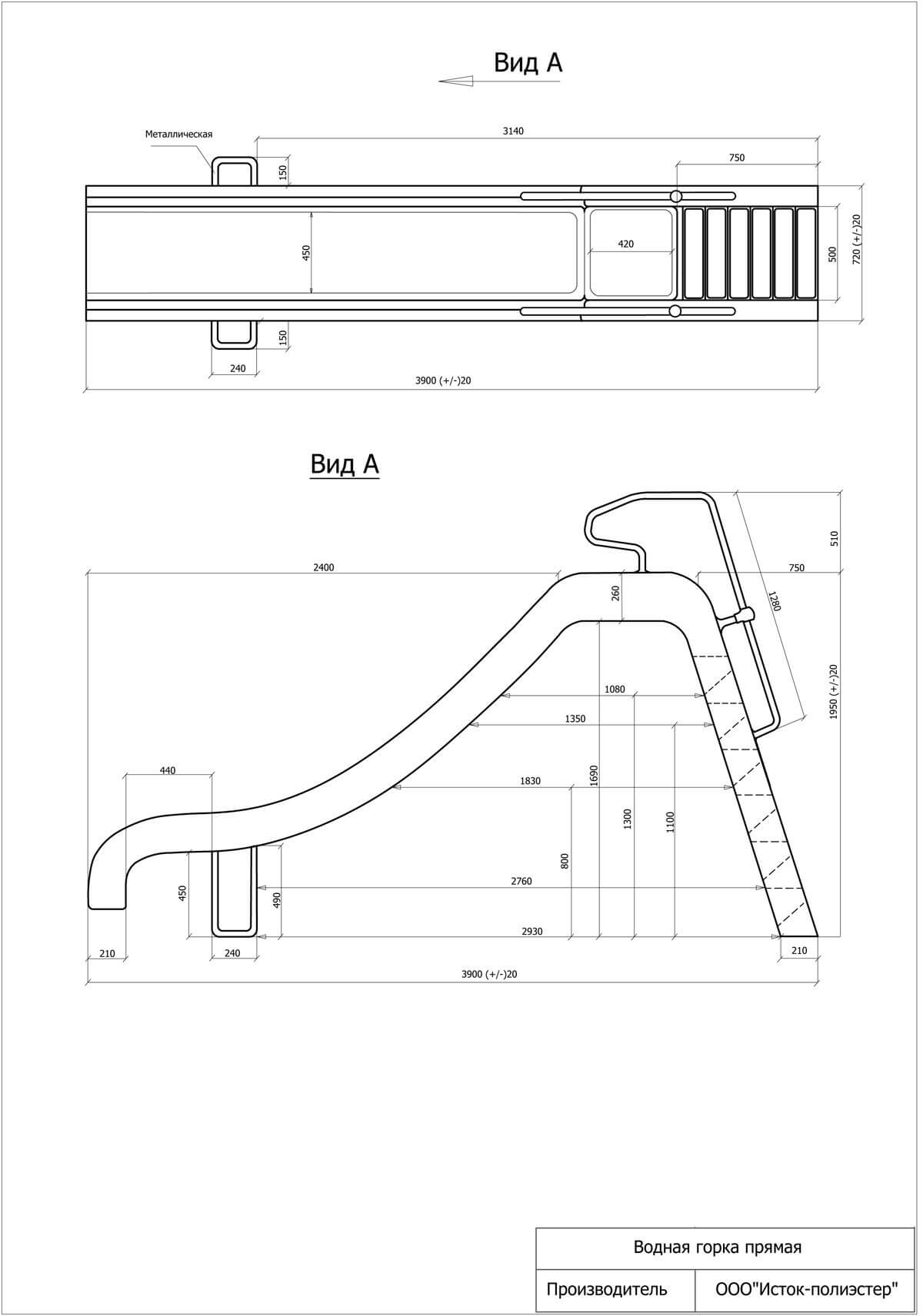 - Водная горка изготовлена из стеклопластика;