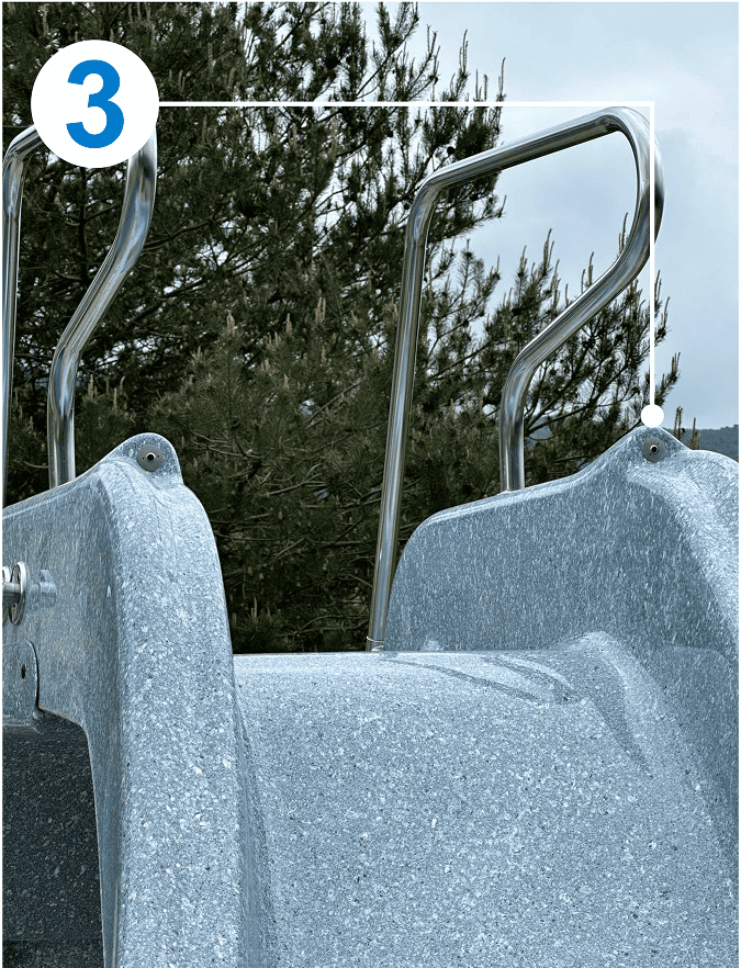 - Поручни ската горки оснащены специальными желобами с дополнительной подачей воды, что обеспечивает ускоренное и совершенное скольжение;